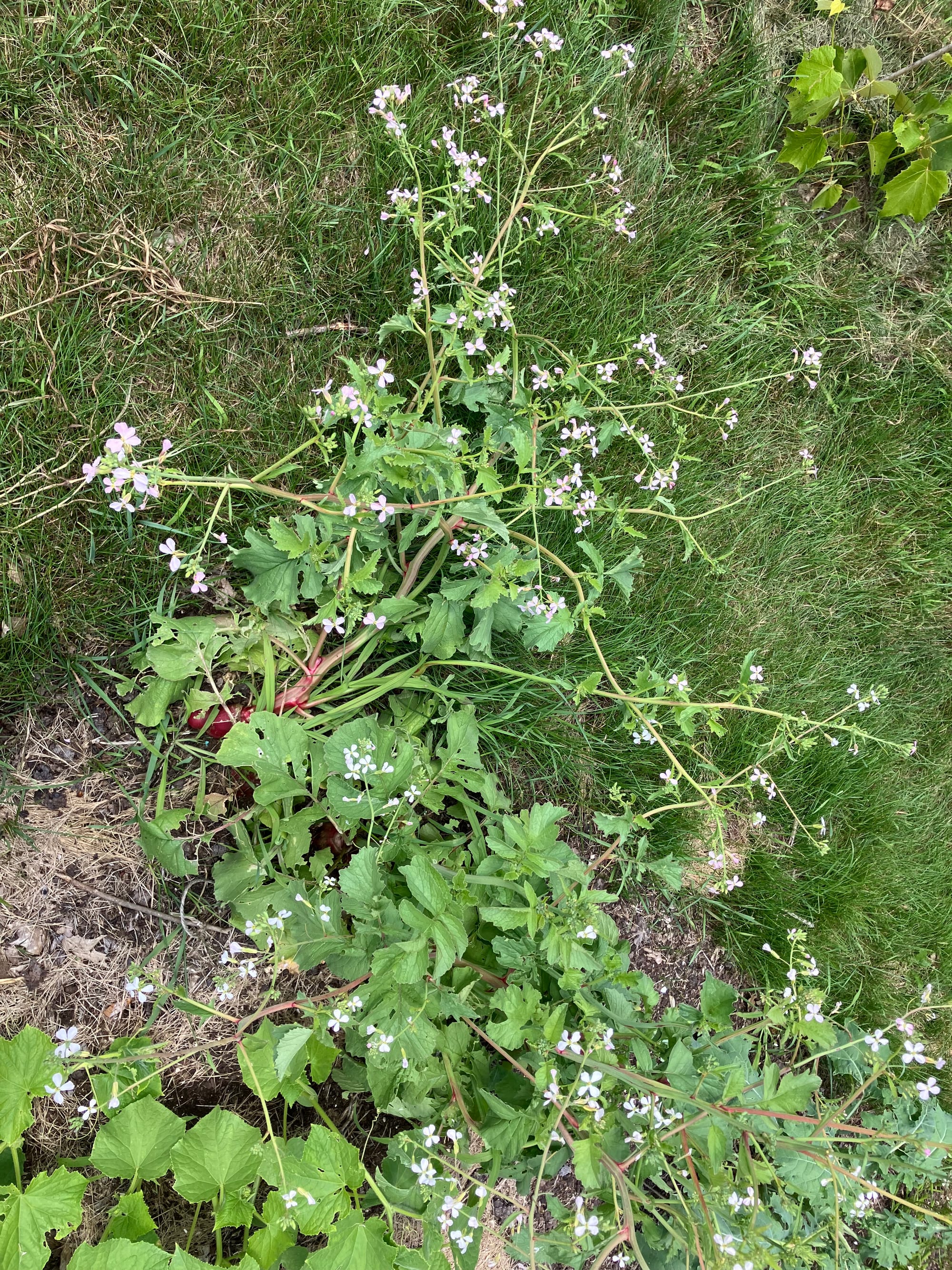 Radishes have a similar growth pattern to arugula. rather than pulling up your radishes, let them get huge, flower, form pods (like arugula), dry, then squeeze them into a jar. I love the flower color on these and so do bees!