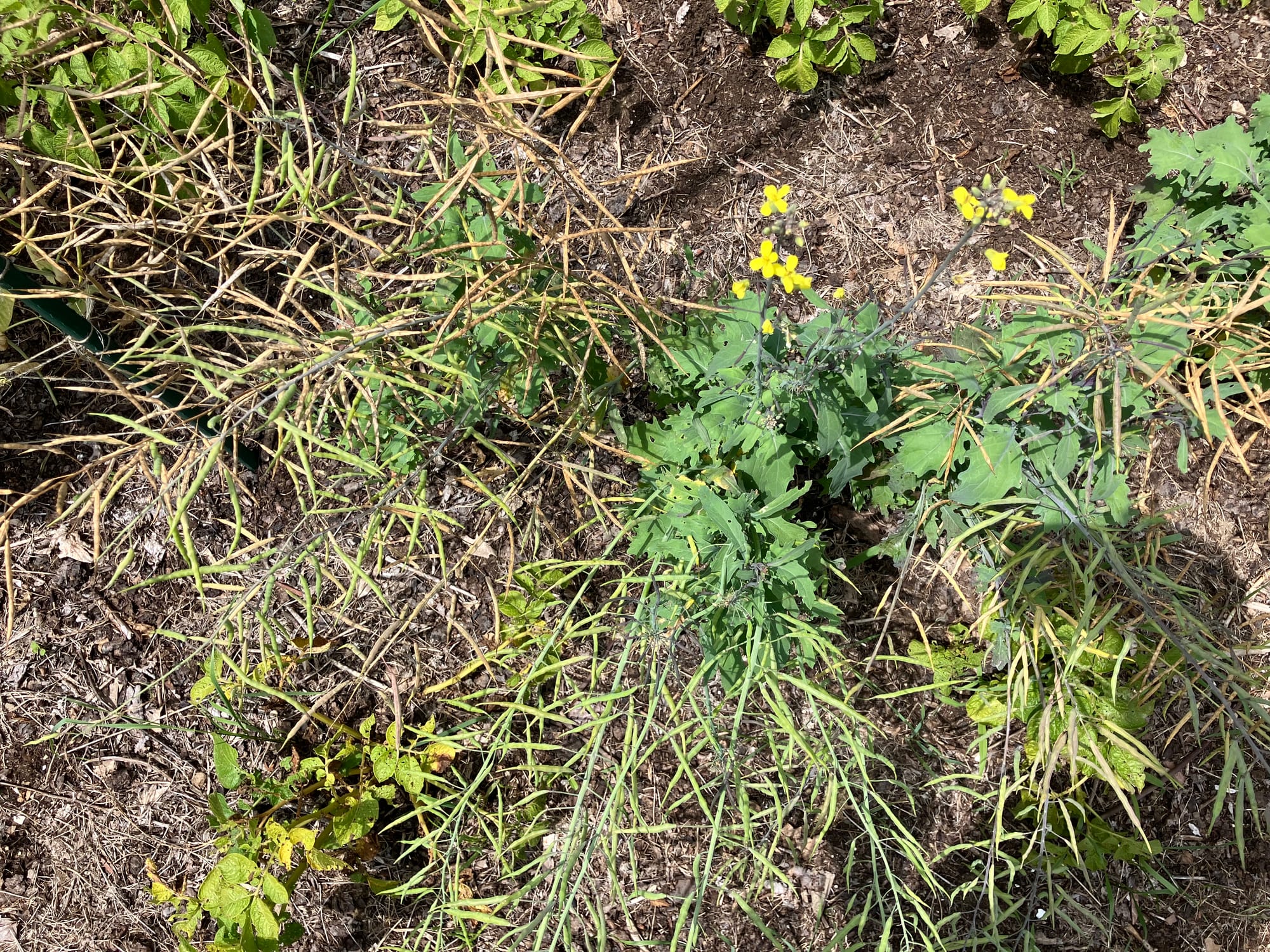 This is the hardest of the three to harvest from because you have to plant the kale in late August so that it grows throughout the fall (remember I'm in cold northern Vermont), then let it overwinter under the snow. I strongly recommend putting fencing around this patch because deer are excellent winter scavengers and will eat all of the plants in a night. In the spring, be careful when you are weeding because these plants can be hard to spot when the snow first disappears. However, in time, you will be treated with the sight of kale plants growing large leaves early in the season, but do not harvest these. Allow them to develop strength and flower. Then, similar to arugula and radishes, they will form pods that you allow to dry out and squeeze into a jar: